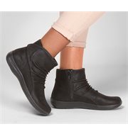 Show the season a thing or two in style and comfort with the SKECHERS Lite Step - Tricky boot. Smooth leather-textured microfiber fabric upper in a zipper side ankle height casual comfort boot with Air Cooled Memory Foam insole.