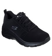 Workout in style in the Fashion Fit - True Feels shoe. Featuring a leather upper with a lace-up design. A Memory Foam cushion comfort insole and built-up retro styled lightweight shock absorbing midsole. Soft fabric shoe lining. Flexible rubber traction outsole. Metallic midsole stripe. 1 3/4 inch heel for fashion accent.