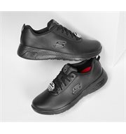 Support, comfort and safety for all day wear comes in the SKECHERS Work Relaxed Fit: Marsing - Gmina SR shoe. Lightly textured full grain leather upper in a lace up dress casual work slip resistant sneaker oxford with stitching accents and Memory Foam insole.