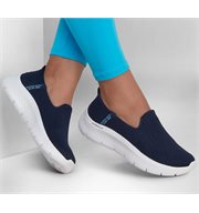 Step-in to convenient walking comfort and cushioning wearing Skechers Hands Free Slip-ins™ GO WALK® Flex - Relish. This laceless design features a breathable athletic mesh upper, our exclusive Heel Pillow™, Skechers Air-Cooled Memory Foam® insole, lightweight ULTRA GO® cushioning and Flex Pillars™ for added support.