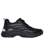 Boost your look with a trend forward statement in Skechers Street™ Hazel. This fashion sneaker features a hotmelt trimmed synthetic and mesh upper with metallic heel-cup detail, gold-flecked stretch laces, and a cushioned Skechers Air-Cooled Memory Foam® insole.
