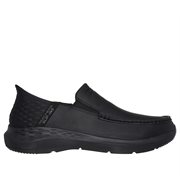 Step into easy-wearing comfort and classic style with Skechers Hands Free Slip-ins™ Relaxed Fit®: Parson - Oswin. Designed with an exclusive Heel Pillow™, this laceless fit moc toe style features a Skechers Slip-ins™ molded heel panel, leather upper, Skechers Air-Cooled Memory Foam® insole, and Goga Mat Arch™ cushioning for added support