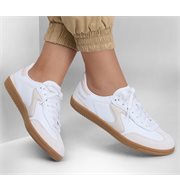 A modern classic meets fresh comfort in Skechers Hotshot - Kickoff. This lace-up court-style sneaker features a duraleather upper with pig suede overlays, contrast 'S' quarter logo, and a cushioned Skechers Air-Cooled Memory Foam® insole.