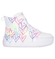 Internationally renowned muralist James Goldcrown brings his iconic #Lovewall heart designs to Skechers in this inspiring collaboration. Flaunt your love for love in Skechers Street™ x JGoldcrown: Hyperlift. This high-top fashion sneaker features the artist's signature heart design on a canvas upper, lace-up front, Skechers Adaptive Closure, cushioned comfort insole, and a platform bottom.