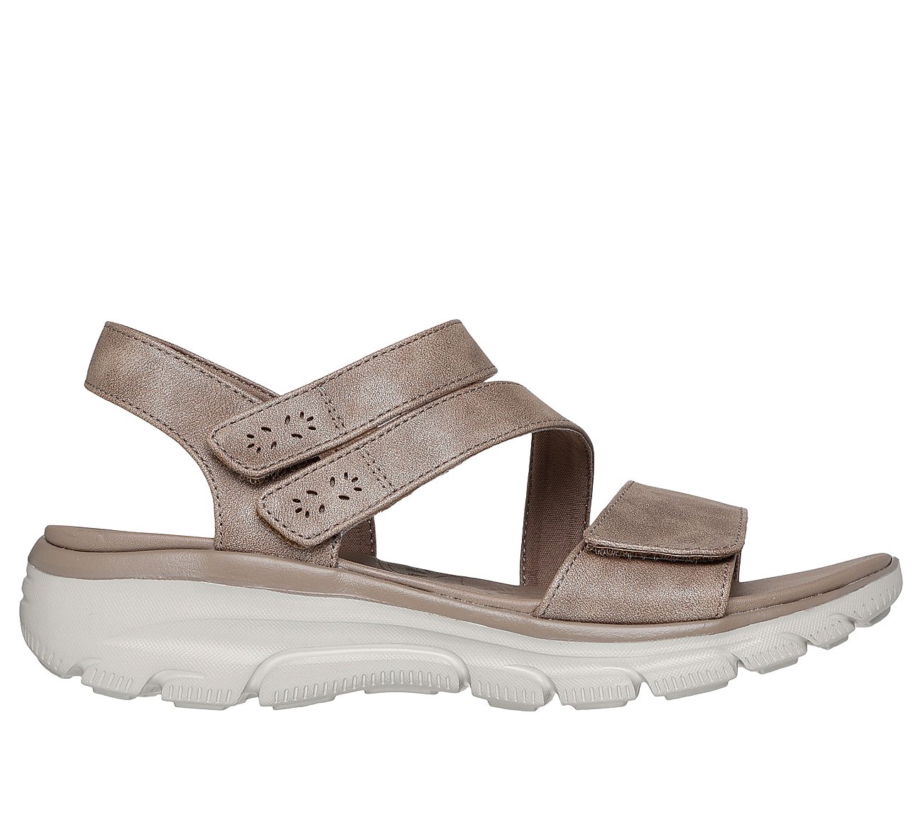 Get ready for sunny-weather style and effortless comfort with Skechers Relaxed Fit®: Easy Going - All Day Chic. This sandal features a vegan leather upper with a metallic shimmer finish, adjustable straps, plus a Yoga Foam® cushioned footbed.