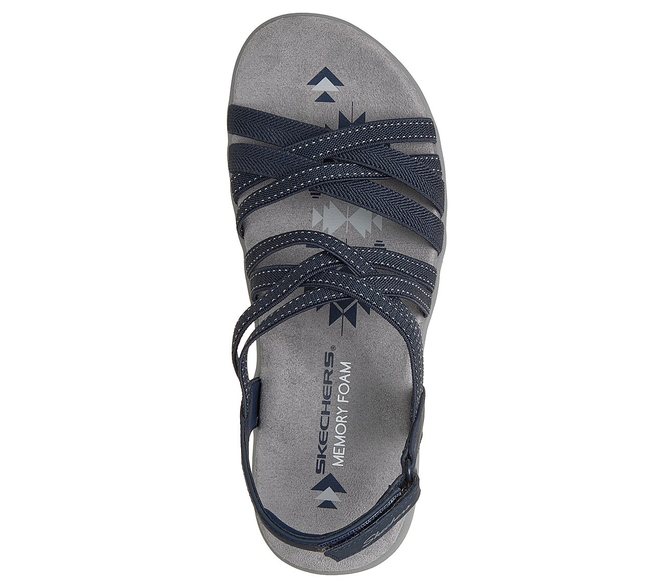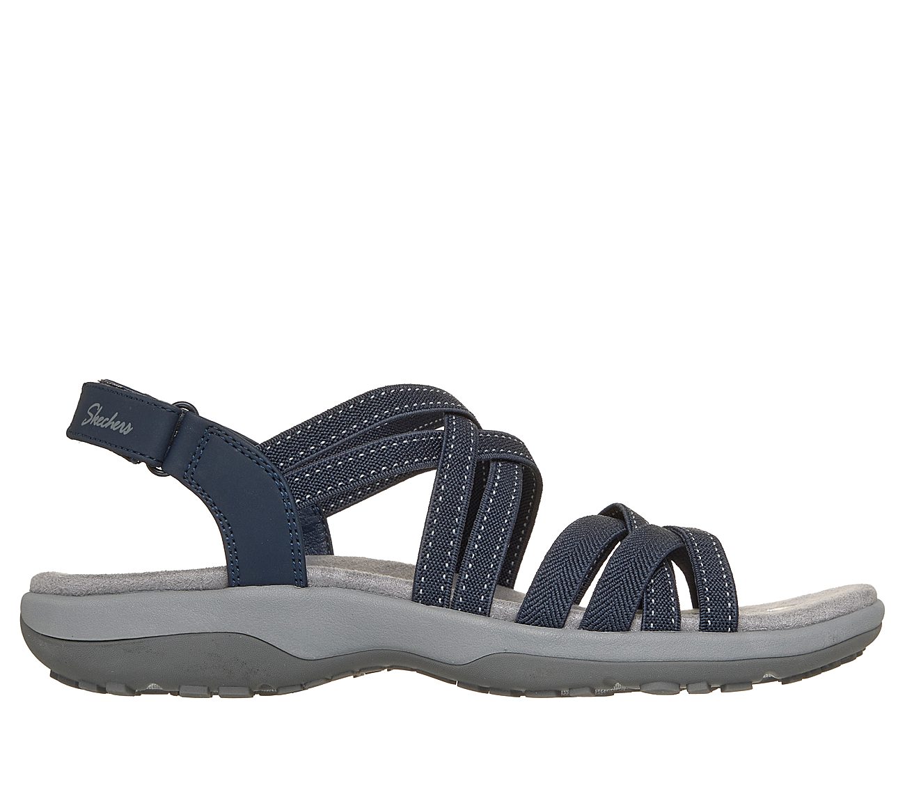 Make your style and comfort out of sight with Skechers Reggae® Slim - Summer Getaway. This sandal features a synthetic and soft Stretch Fit® fabric upper with an adjustable strap, plus a cushioned Skechers Memory Foam® footbed.