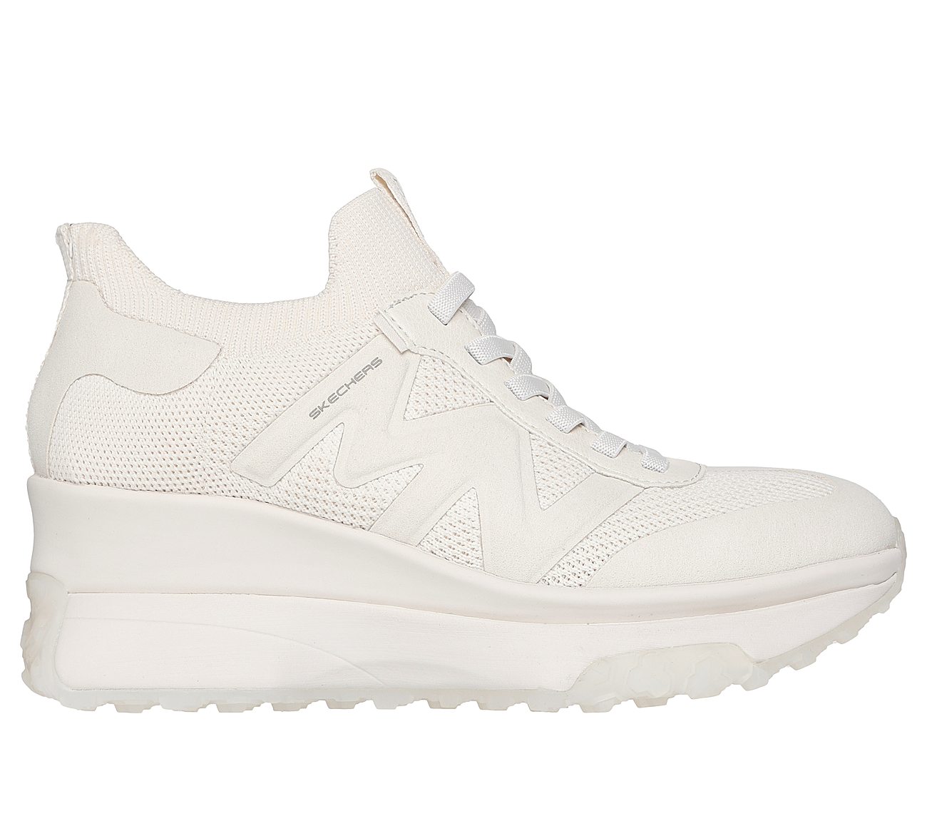 Vintage vibes meets modern comfort in Mark Nason® Skechers: Upper Cut Neo Wedge - Juni. This retro inspired wedge jogger features a knitted upper with stretch laces, a quarter panel MN logo and a cushioned Memory Foam Lux insole.