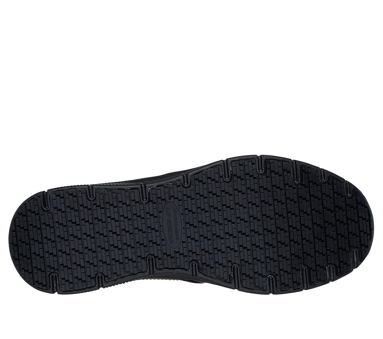 Surefooted comfort and easy-wearing safety combine in Skechers Hands Free Slip-ins® Work™: Nampa - Broxtin. Designed with our exclusive Heel Pillow™, this slip-resistant style features a smooth leather upper with double-gore panels and a cushioned Skechers Air-Cooled Memory Foam® insole.