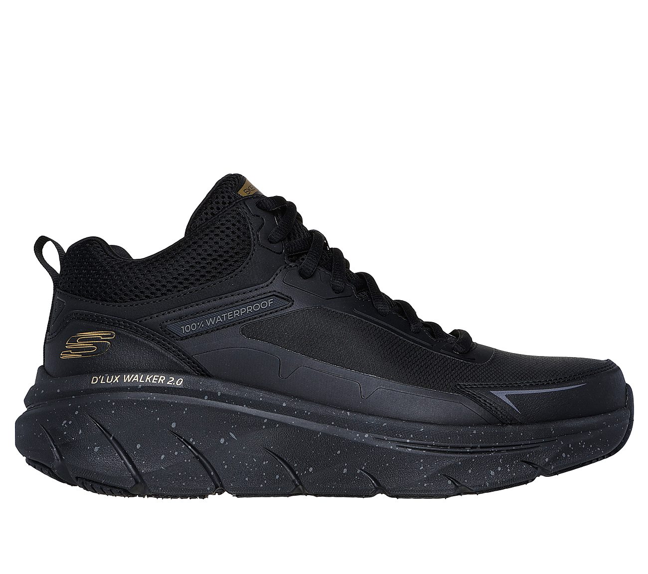 Step out in complete comfort rain or shine, wearing Skechers Relaxed Fit®: D'Lux Walker® 2.0 - Grailo. This mid-top design features a breathable, waterproof ripstop mesh upper with leather and synthetic overlays, our Breathe-Easy Technology™, and a Skechers Air-Cooled Memory Foam® insole.