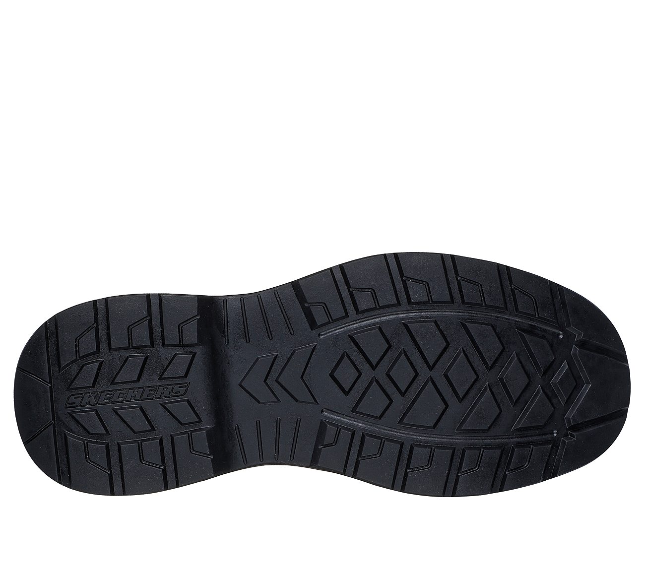 Dressy versatility and modern comfort combine stylishly in Skechers Relaxed Fit®: Lockett - Heath. This roomy Chelsea-style boot features a leather upper with twin gore panels, round toe, and a cushioned Skechers Air-Cooled Memory Foam® insole.