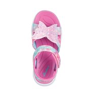 Brighten up their steps with fluttering style in Skechers Jumpsters Sandal - Butterfly Brights. This light-up butterfly design features a shimmery synthetic strap upper with Skechers Adaptive Closure, and a cushioned comfort footbed.