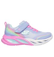 Step into a world of color and comfort wearing Skechers S-Lights®: Cosmic Glow - Rainbow Dream. This light-up Skechers adaptive closure design features a sparkle mesh upper with a 3D rainbow print, fixed stretch laces, a hook-and-loop instep strap, and a well-cushioned midsole with step-activated lights.