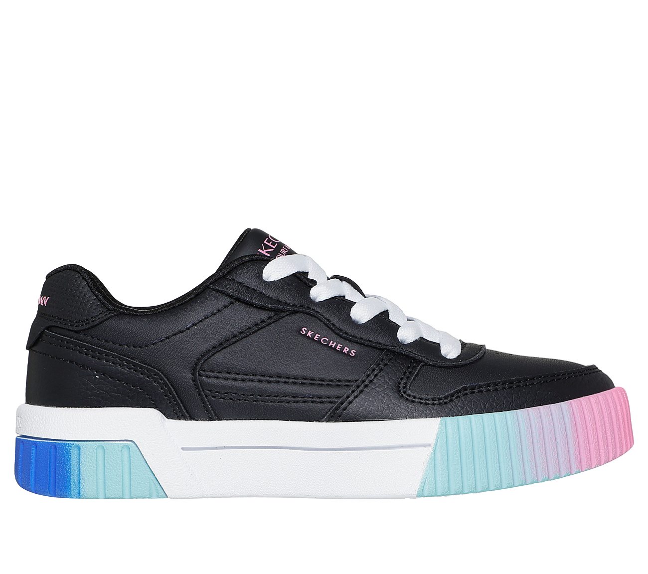 Enjoy classic court-style looks and comfort with Skechers Jade. This low-top lace-up features a synthetic upper with ombre midsole detail and a cushioned comfort insole.
